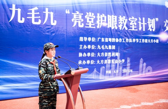 4月25日,九毛九集团“天河大方——亮堂护眼教室计划”交付仪式在贵州省大方县将军山小学举行。广州市天河区、毕节市大方县、九毛九集团及13所受赠学校共同参加本次活动。